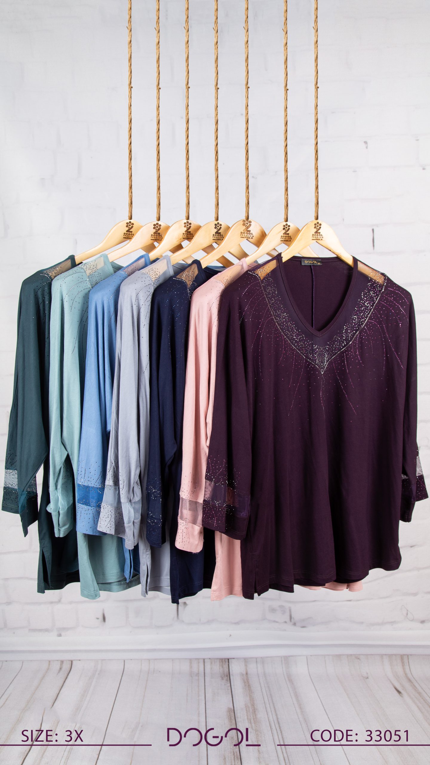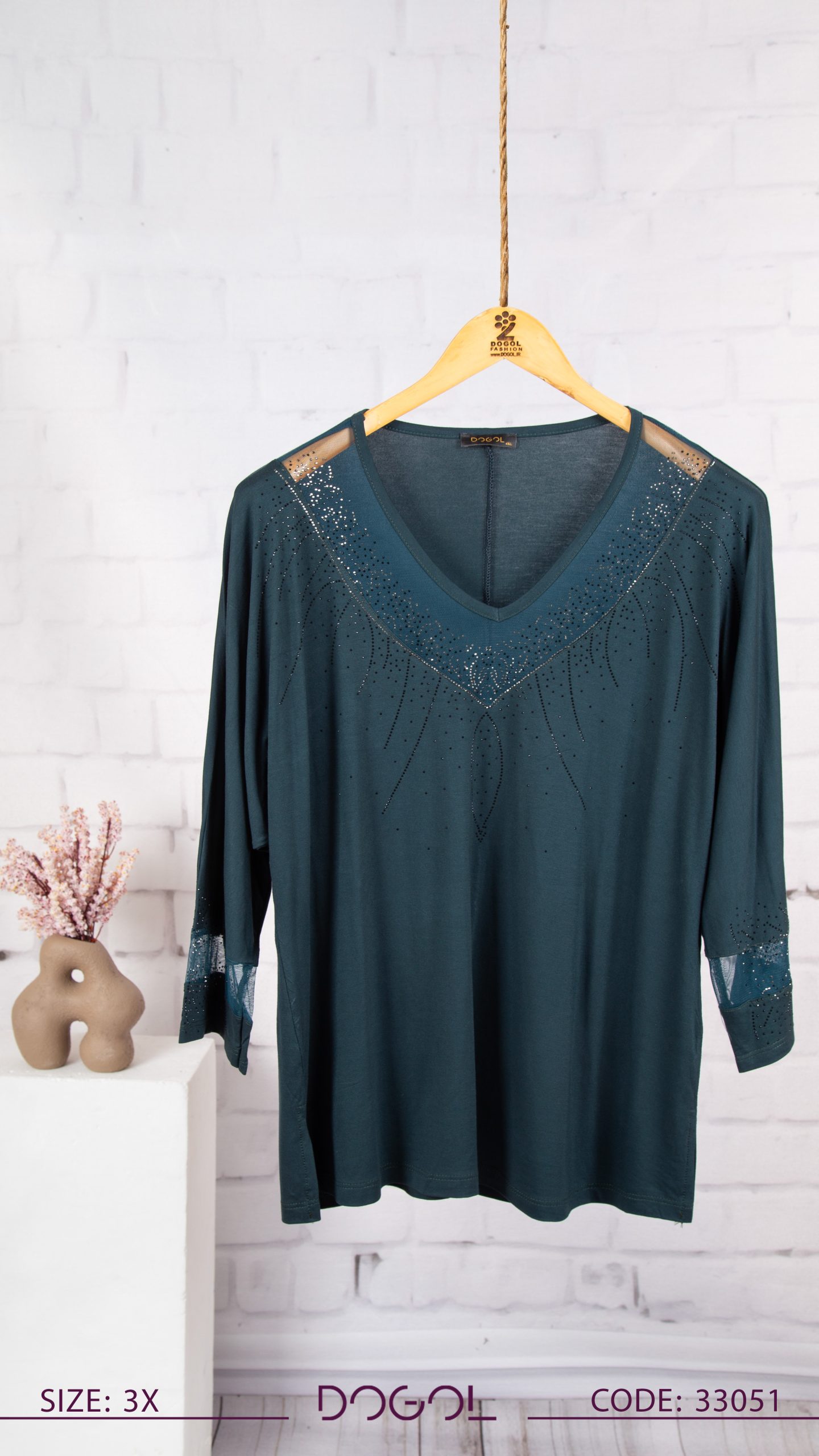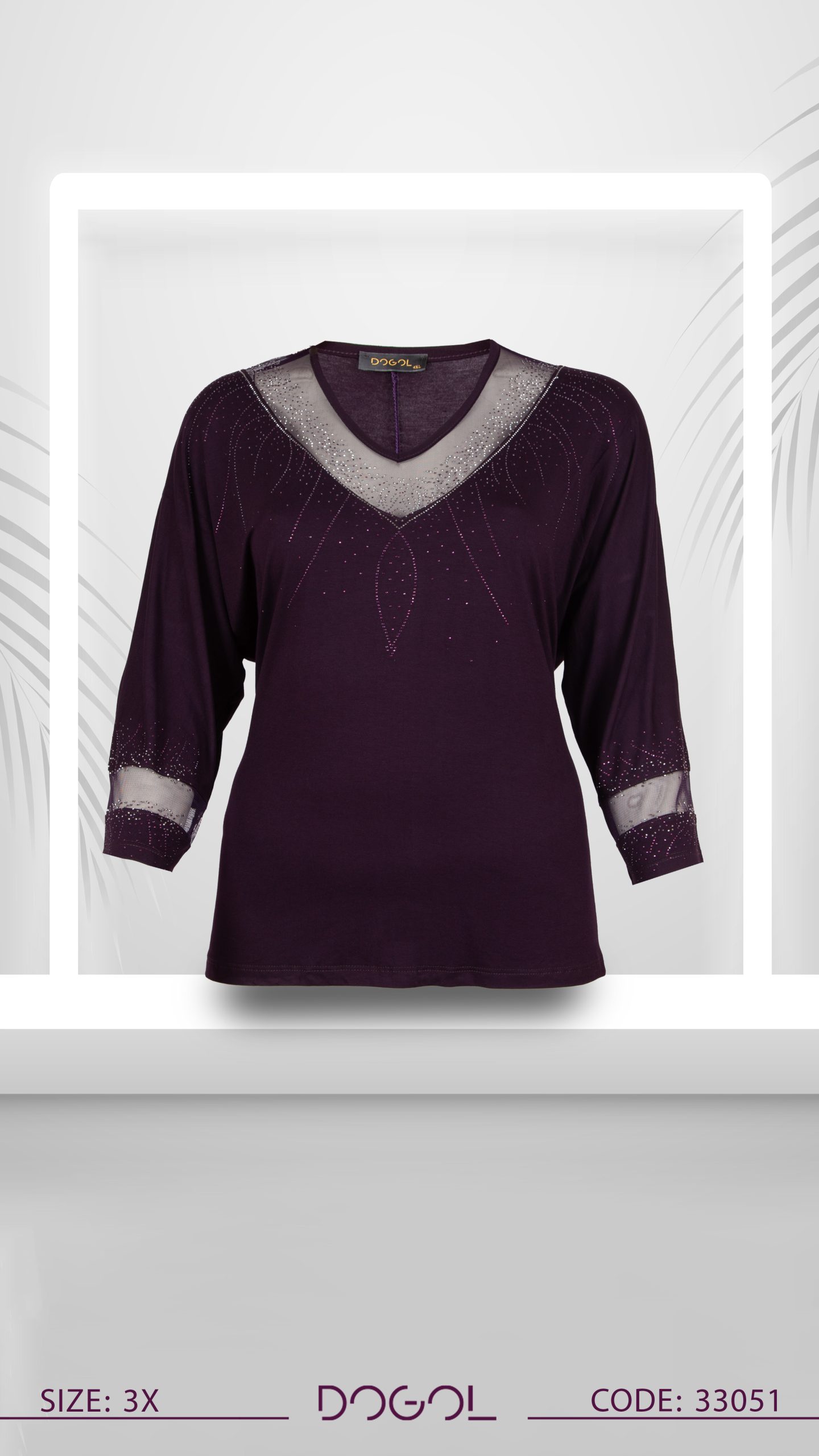 بلوز سه ربع ویلفو طرح یقه هفت تور دار