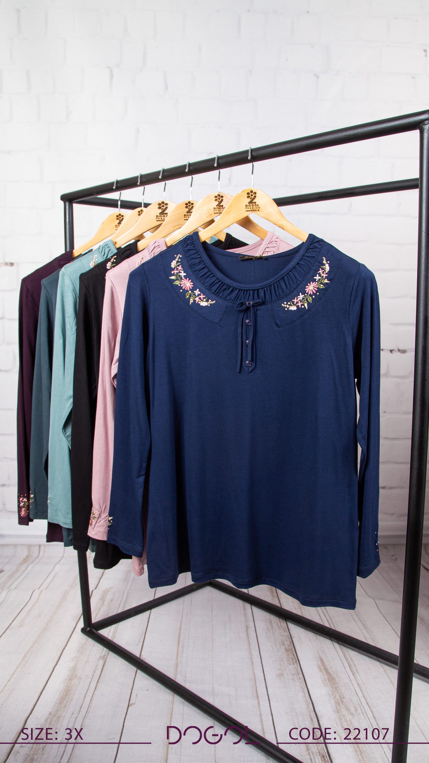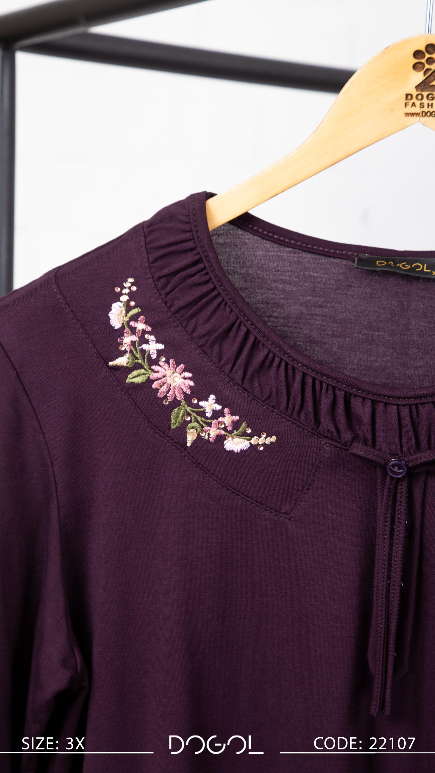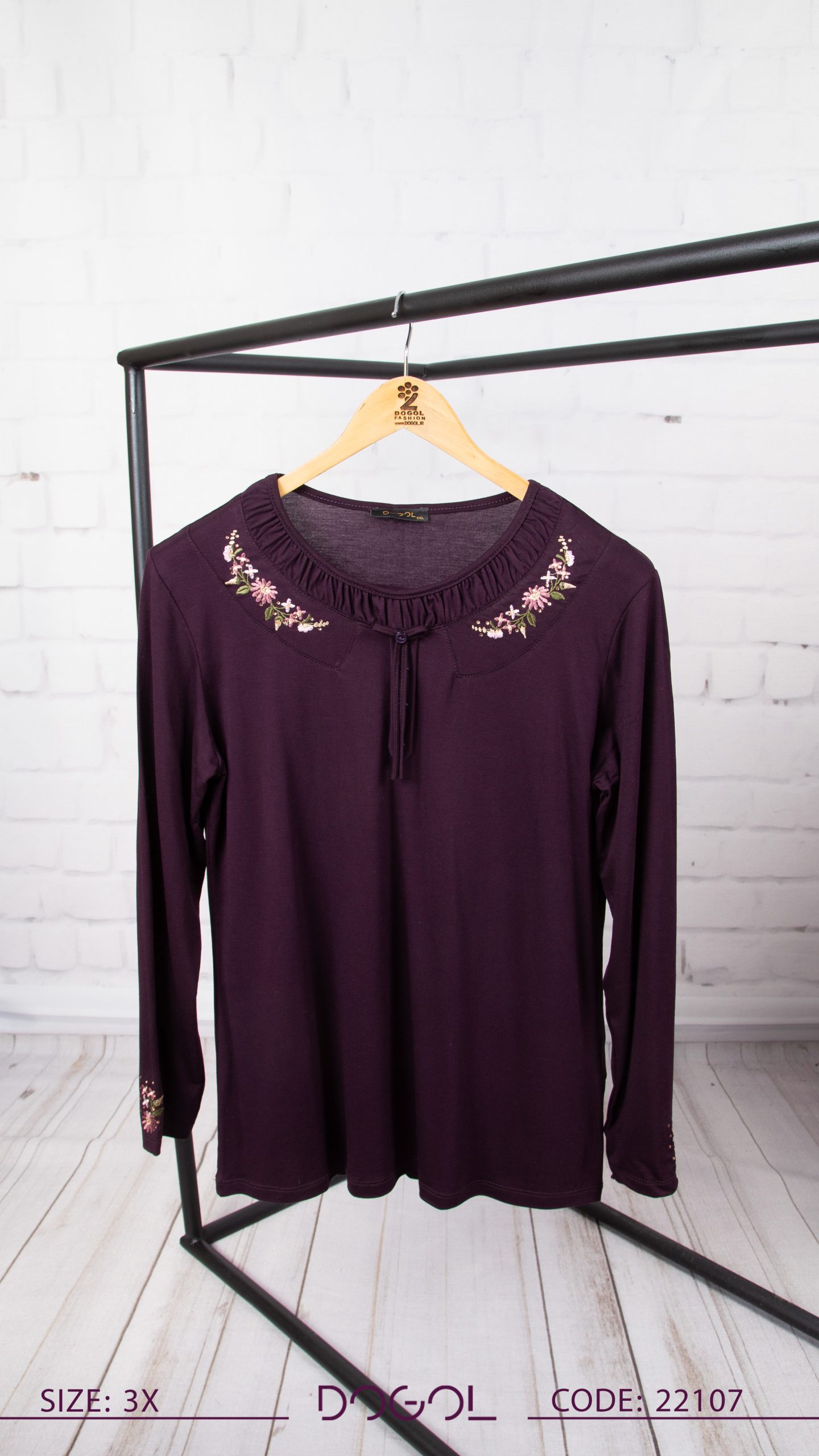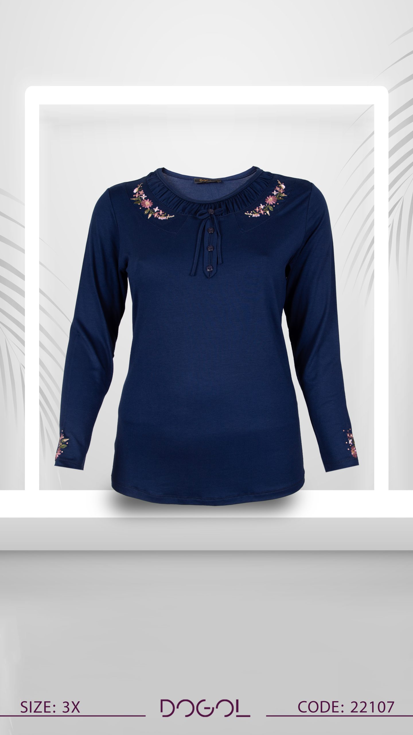 بلوز ویلفو یقه چین دار گلدوزی پاپیون