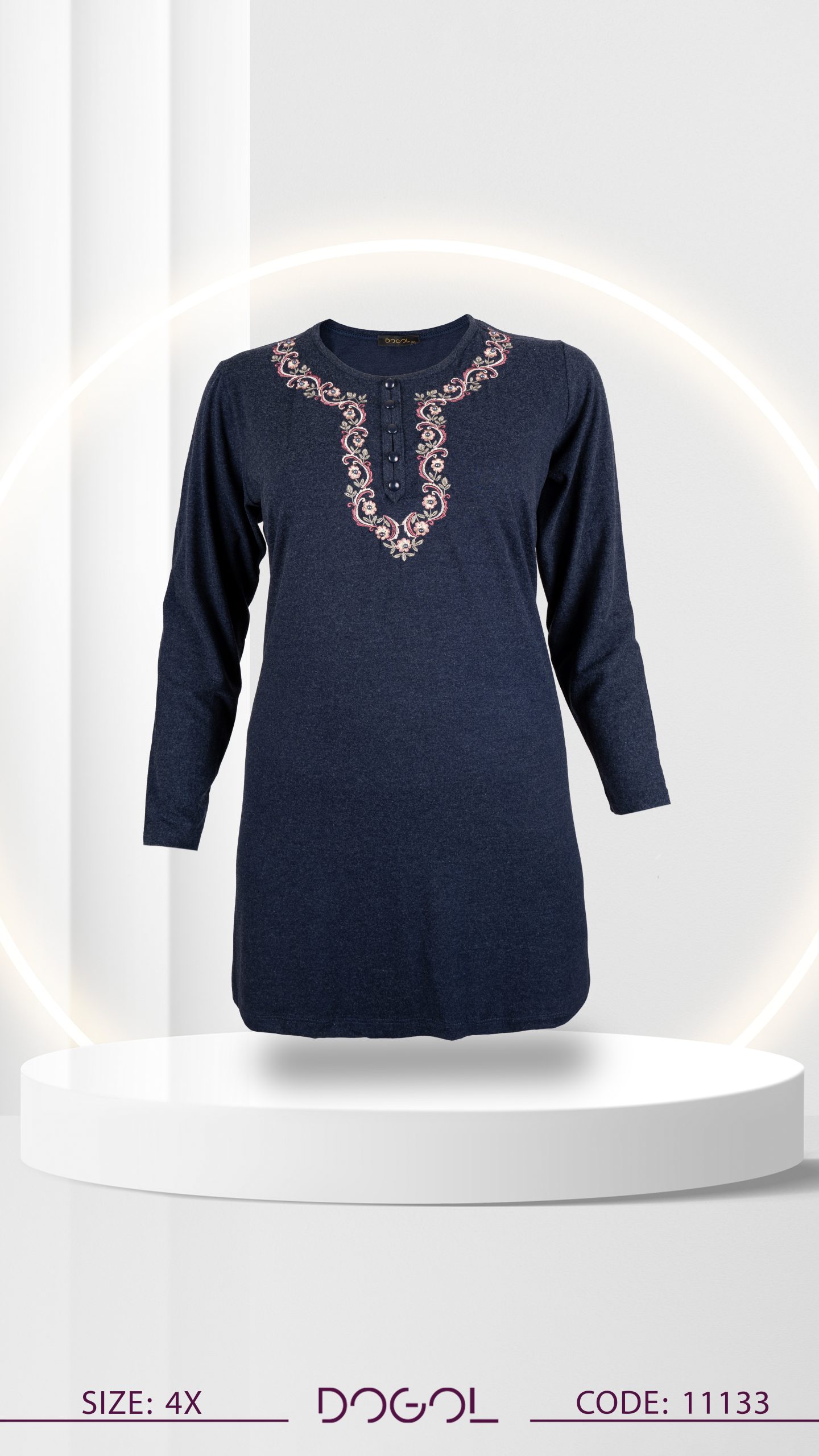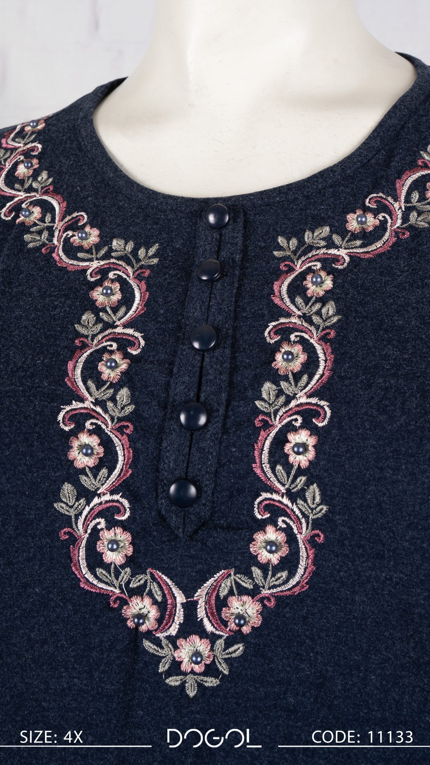 ✅️تونیک سافت پلاس سه دکمه گلدوزی نیلوفر